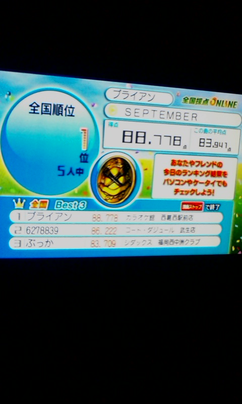 9月ですね、ブライアンさん堂々の全国1位です^-^